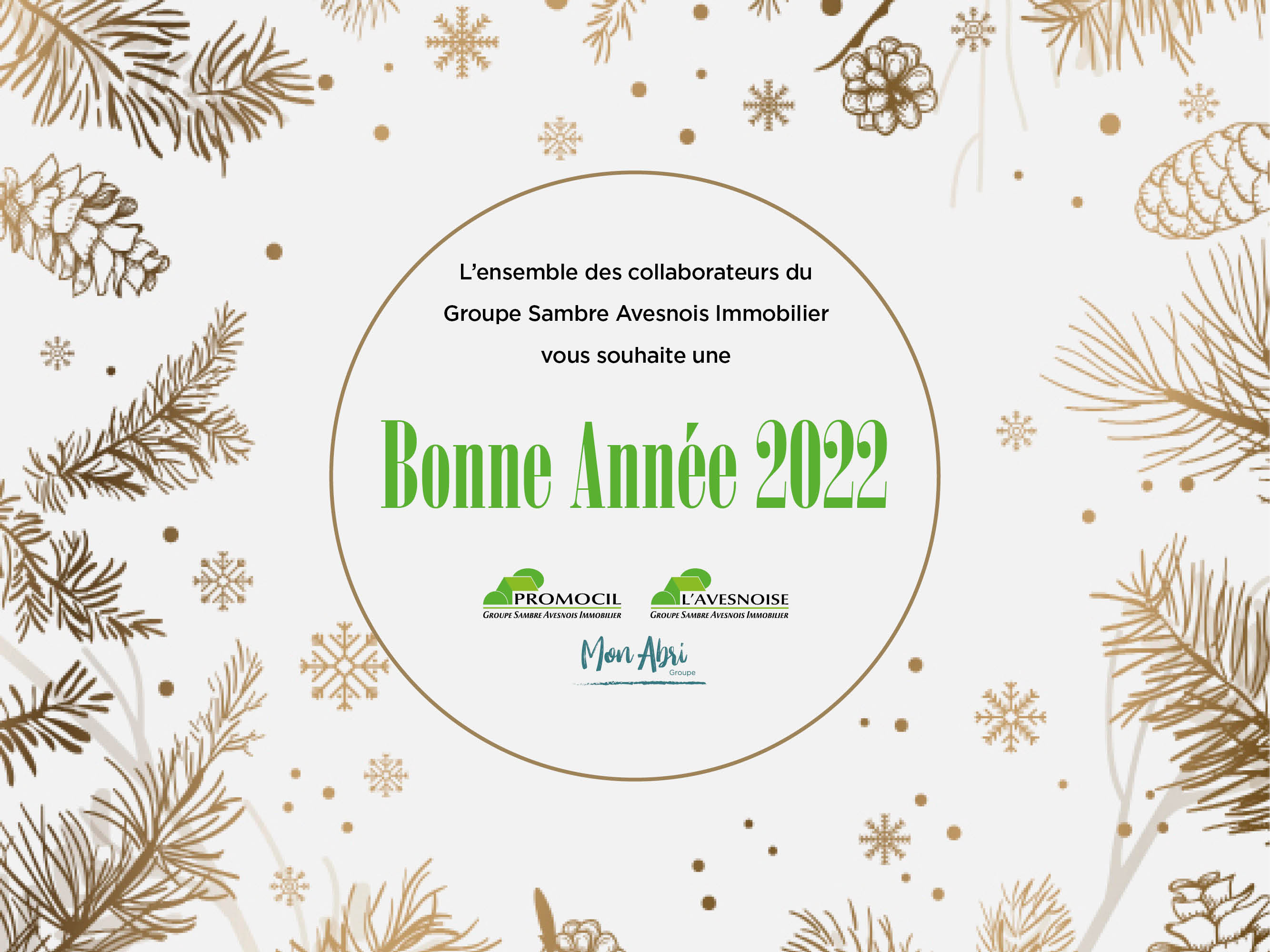 Le Groupe Sambre Avesnois Immobilier, PROMOCIL, L’AVESNOISE et SOLIHA Sambre-Avesnois vous souhaitent une belle et heureuse année 2022 !